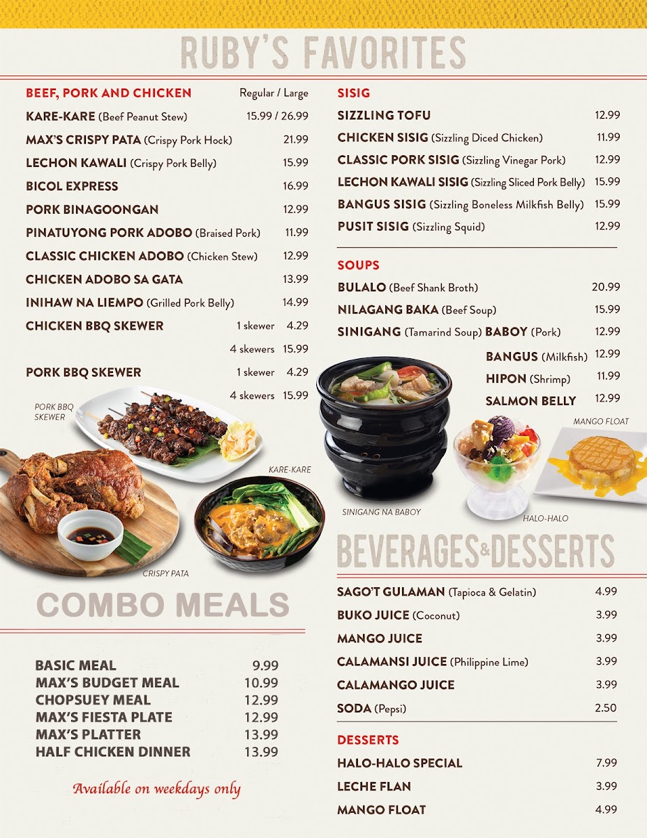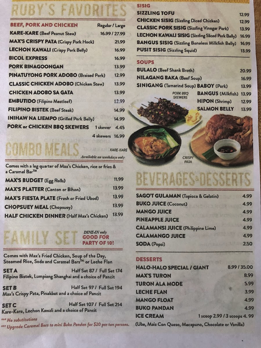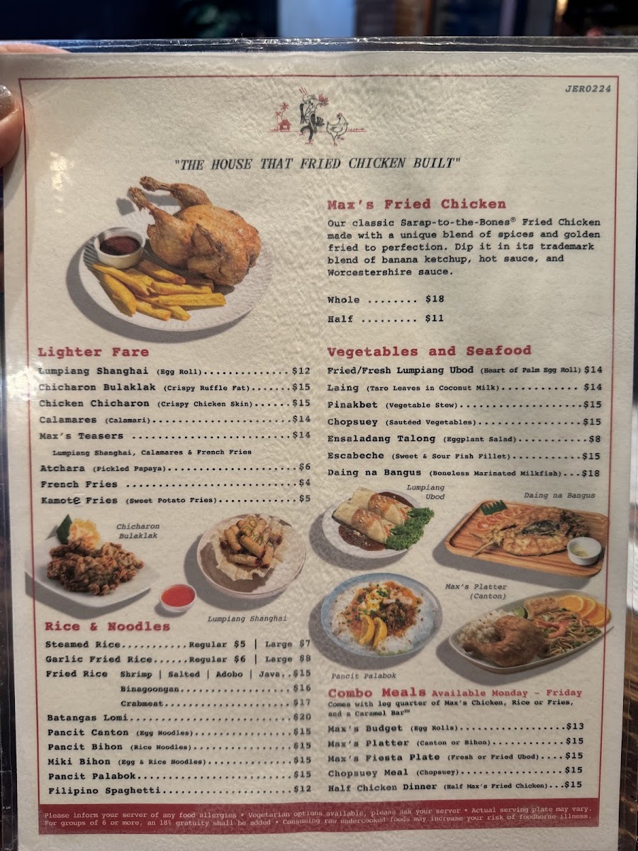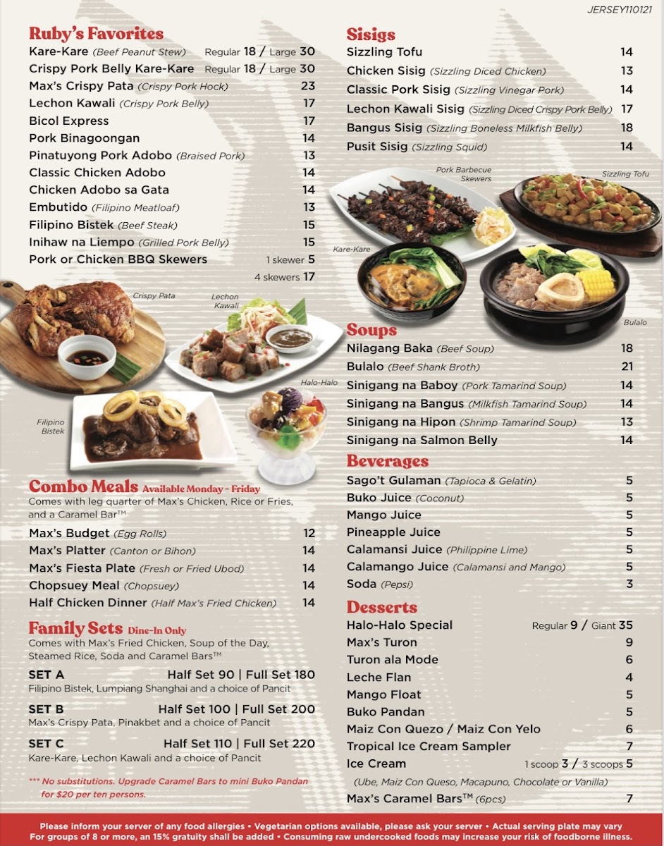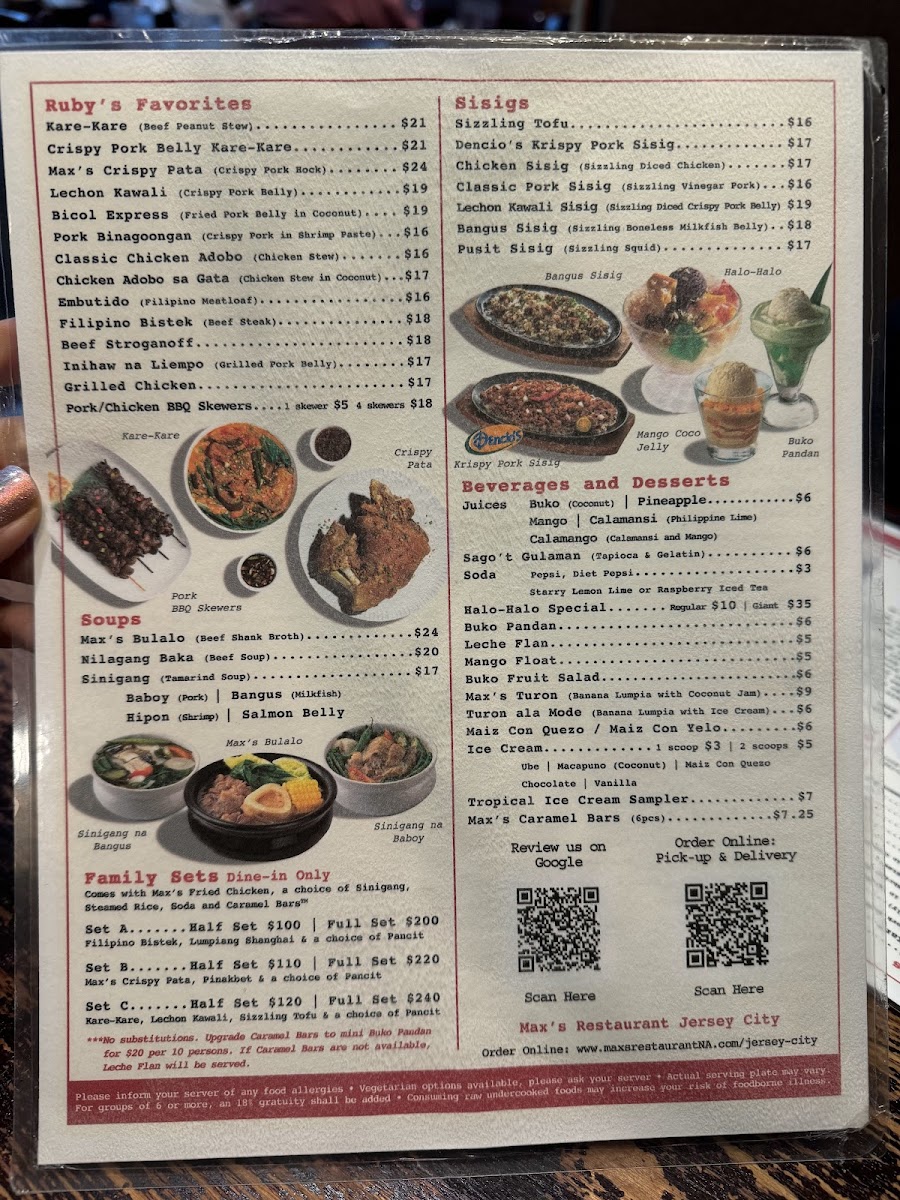 Welcome to Max's Restaurant Jersey City, a delightful haven for lovers of Filipino cuisine. Located at 687 Newark Ave, this vibrant restaurant captures the essence of the Philippines with its rich and flavorful menu. The spotlight shines on Max's Filipino Fried Chicken, available in both spicy and regular varieties, each fried to golden perfection. For those seeking something unique, try the Krispy Pork Sisig—a tantalizing dish featuring marinated pork cheeks, crispy chicharrón, and a spicy chili kick.